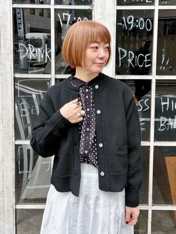 洗えるショートカーディガンは、シックなブラックをセレクト。