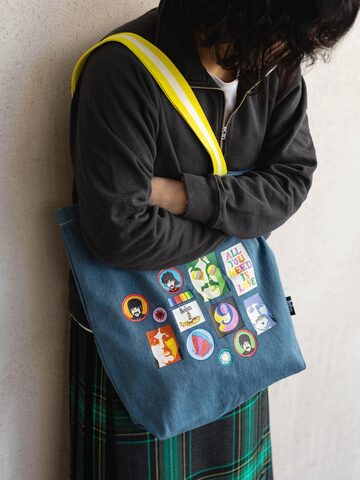世界中で愛され続ける、ビートルズの名作アニメ映画「イエロー・サブマリン」の世界観をぎゅっと詰め込んだ、存在感抜群のトートバッグ。カラフルでサイケデリックなアートワークが、パッチ風プリントで大胆にデザインされています。