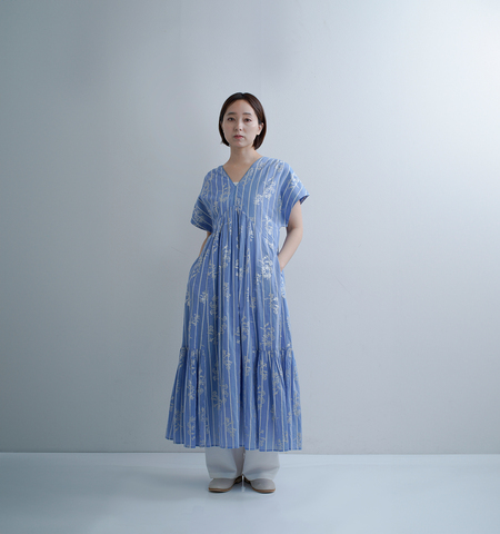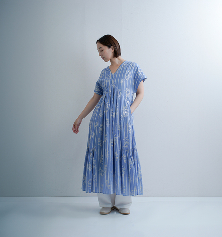 ne Quittez pas(ヌキテパ)より、コットンボイル ストライプ アネモネ箔プリント フレンチスリーブ ドレス Cotton Voile Stripe Anemone Foil Print French Sleeve Dressのご紹介です。