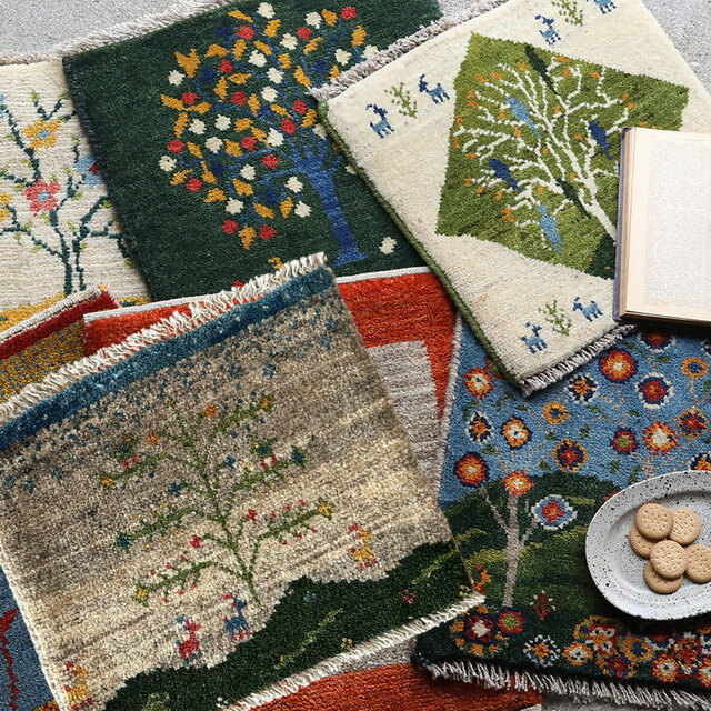 まずは、可愛いサイズのミニギャッベから、その魅力を楽しんで頂けたらと思います。