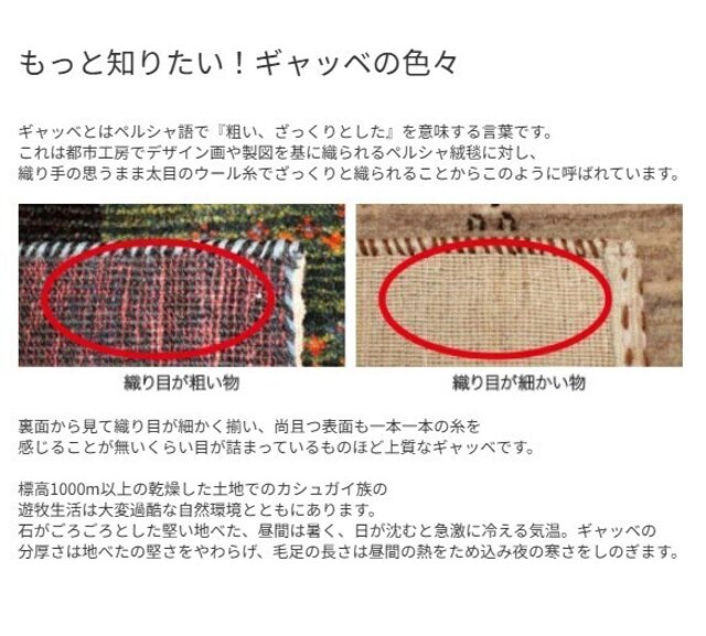 遊牧民の知恵と感性がつまった色美しいギャッベ。