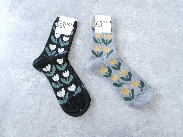 ベーシックなベースカラーにポップな雰囲気のチューリップ柄が映え、
