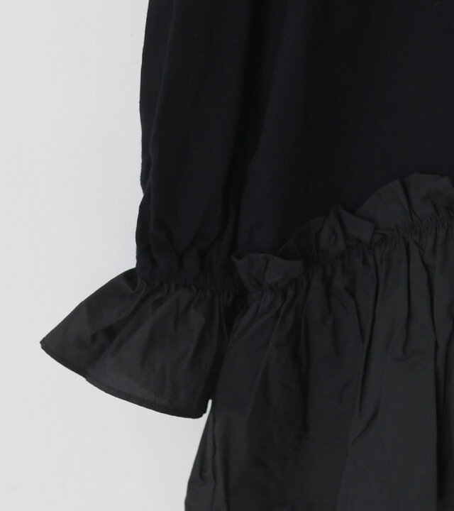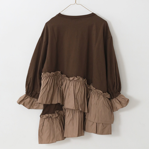 UNIVERSAL TISSU|異素材フリル×カットソーが絶妙なバランス クラシック天竺 バイカラーアシンメトリーフリルプルオーバー kurashisha