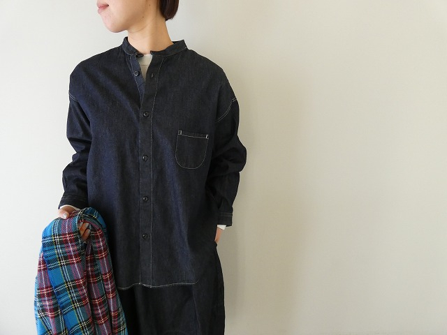 すっきりとした首元が印象的な、prit(プリット)のスタンドカラー長袖シャツ。