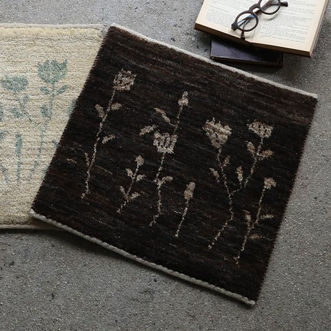 雰囲気のある花の柄 草木染の100%ウールだけで織った ミニギャッベ フラワー 約40×40cm kurashisha