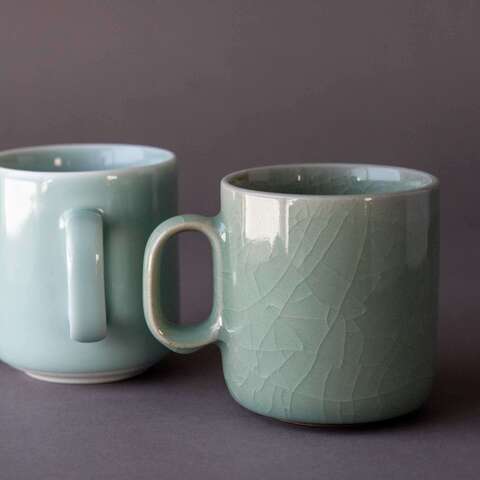 左/鍋島青磁 マグカップ、右/鍋島青瓷 貫入マグカップ