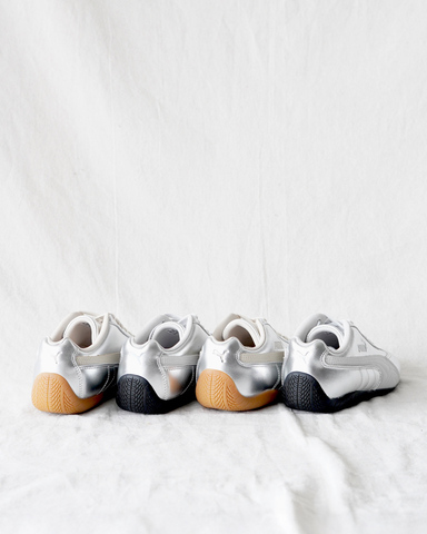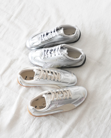 こちらのモデルはキラリと輝くメタリックディテールやデボス加工のプーマブランディングが、アイコニックなルックスに洗練されたアクセントをプラス。クラシックでありながら現代的にアップデートされた一足です。