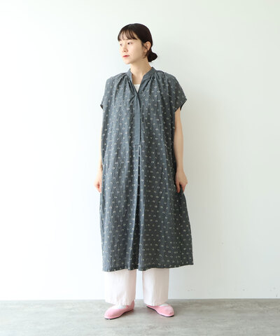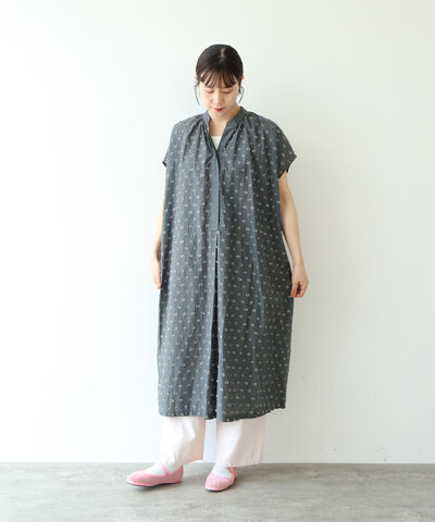 涼やかなスキッパー襟と、軽いジャカード素材が心地よい風を通し、季節を軽やかに彩ります。