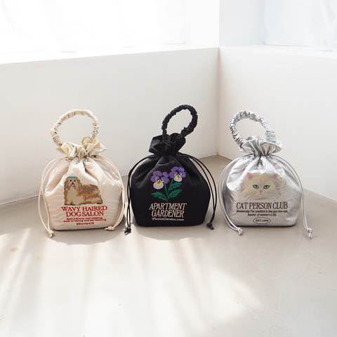 リアルタッチな刺繍とコロンとした形が可愛い巾着バッグ