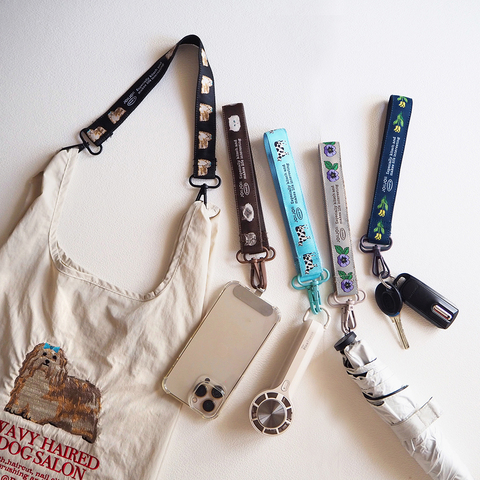 ふわふわヘアーの犬、おすまし顔の猫、心ときめくチューリップやパンジー、ユニークな牛といった、JOliJOliらしい可愛いモチーフがストラップに刺繍で表現されています。きれいな配色でコーディネートのワンポイントになり、お出かけに持ち歩くのが楽しみになるデザインです!