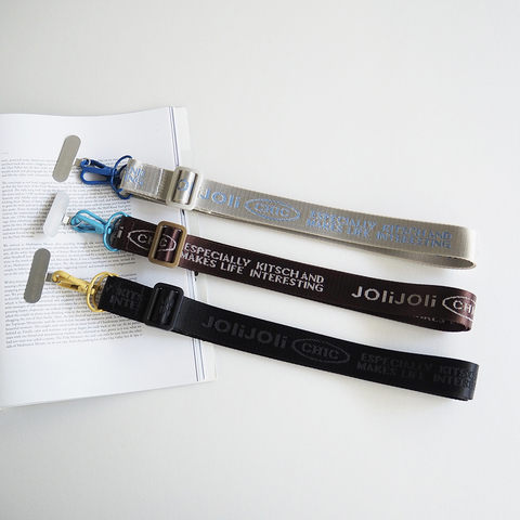 JOliJOliのロゴをデザインしたシンプルなストラップ。パーツ部分のカラーがアクセントになる全3色展開です。ストラップを取り付けられるパーツが付いていれば、お手持ちのお財布、 ポーチ、折りたたみ傘、ハンディーファンなどにも取り付けることができる優れもの。
