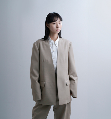 LOEFF(ロエフ)より、高密度 ウール ギャバ ノーカラー ジャケットのご紹介です。