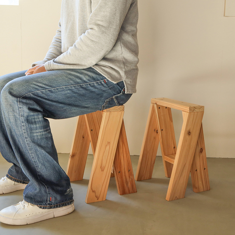26×90の規格寸法材を使用した明快なデザインは、親しみやすく、使い勝手も抜群◎2脚で1セットになっているので、「座る」以外の使い方もあるんですよ。自分の暮らしにぴたっとフィットする使い方が見つかりそう。