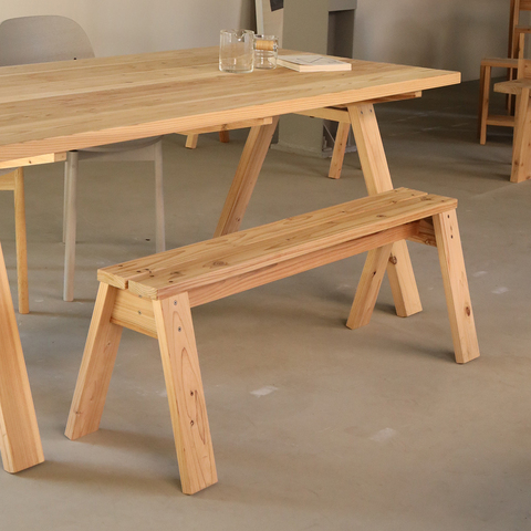 能ISHINOMAKI STACKING BENCH では、 そんな木を使用したノンフィンガージョイント集成材を使用しています。 これは、丸太のメイン部分を切り出した後の余分な部位から、 細長い木材を貼り合わせて加工された板材のこと。 狂いがなく均一で、特にスタッキング性能には最適とされ、 無駄のない工程から生まれるサステナブルな素材です。