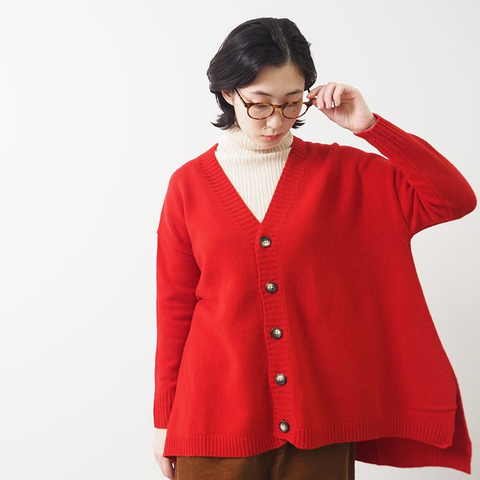 ボタンを閉めるとVネックになり、お顔まわりをすっきりと見せてくれます。