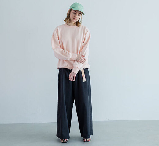 ウエストはワイドなシルエットを作るためにややゆったり目。LIGHT BELT などベルトで調整していただくことをおすすめしています。