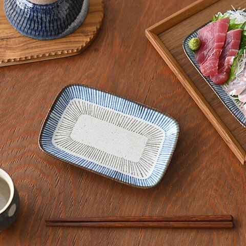 藍茶十草 長角皿