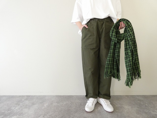 しっかりとしたハリ感のある綿素材は、穿いたときにシルエットがきれいに出て、カジュアルすぎず落ち着いた印象に。