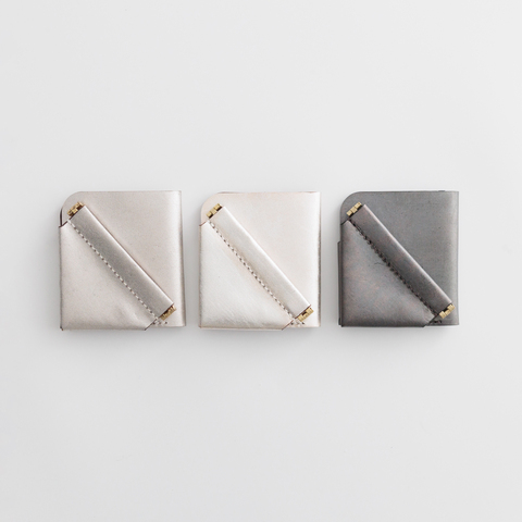京都の金彩工芸で受け継がれる技術をつかい、金属箔を貼った植物タンニンなめしの革。