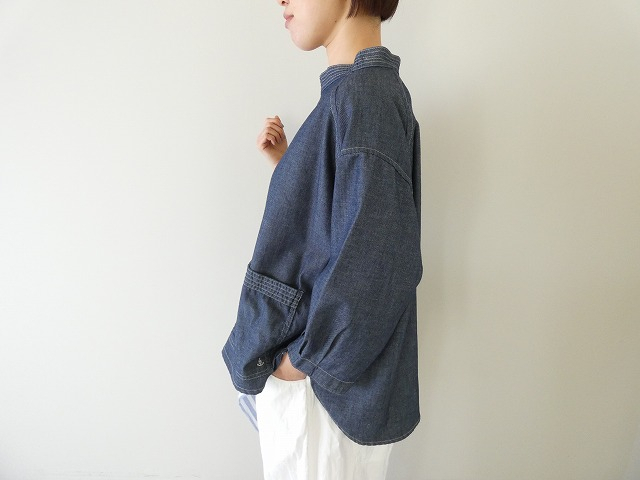 やわらかで薄手の風合いのライトオンスデニムを使った、表情のあるスモック。