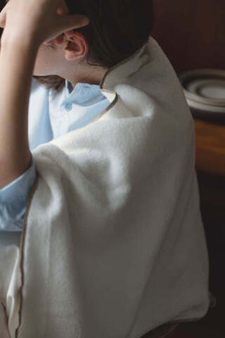さらりと心地よいガーゼ面と、しっかり水分を吸収するパイル面を組み合わせた仕様。染めを施さないホワイト生地にブラックのかがりをあしらったoff×black、同じくブラックのかがりにコーヒー染めの落ち着いた色合いを添えたcoffee×blackの2色からお選びいただけます。