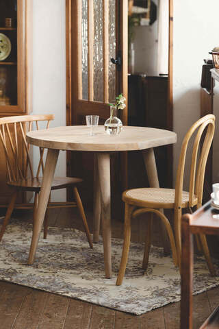 角のない柔らかな雰囲気でどんな空間にも馴染みつつ、スタイリッシュなアクセントを加えるラウンド型のダイニングテーブル。