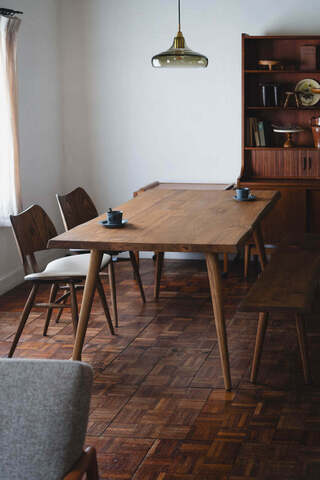 耳付きチーク無垢材を贅沢に使用したダイニングテーブル