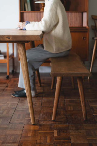 また、「大皿をシェアする時には真ん中に寄る」、「少し距離を取って作業スペースを確保したい時には端に座る」など、その時々の気分や状況に合わせて腰かける場所を自由に決められるのもベンチの魅力です。
