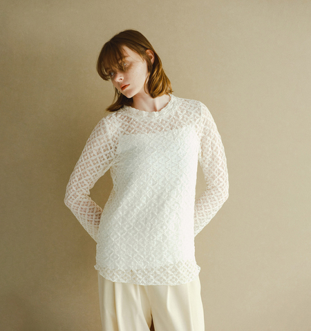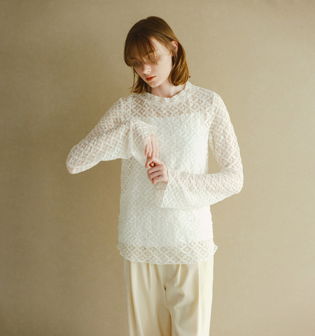 さりげないシアー感と華やぎをまとう、総レーストップス。