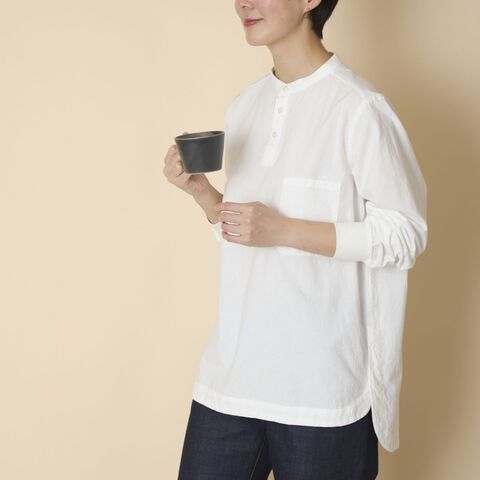 生地が若干薄手になり軽やかな風合いが増しています。綿100%の生地ですので丈夫で扱いやすく、ナチュラルな風合いが魅力のシャツです。