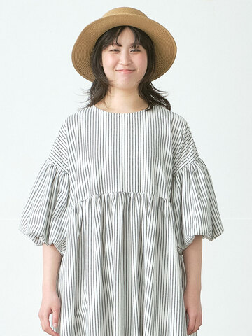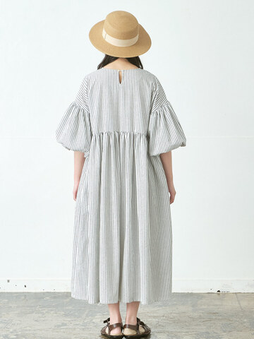D*g*y|配色バルーン袖ワンピース 綿麻ジャガード D9607