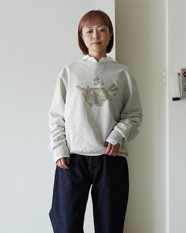 フロントには大学モチーフのロゴとタイガープリントを配しながら、色味や表情は落ち着いたトーンに抑えることで、大人のスタイリングにも自然に馴染む佇まいに仕上げられています。