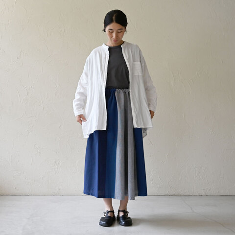 個性派スカートを、白で柔らかくまとめました。
