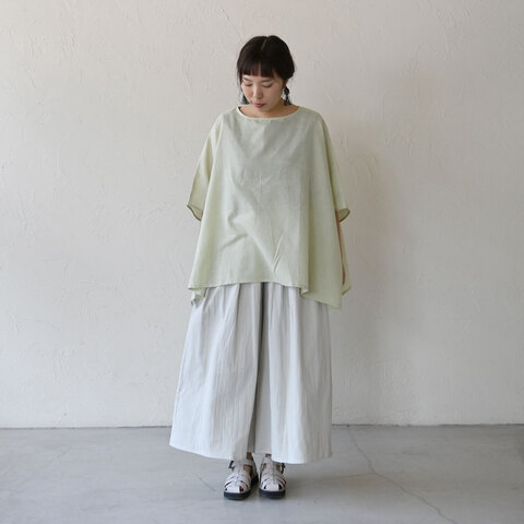 リラックストップスと合わせたスタイリングは、歩くたびに心地よく風が通り抜けていく、とっておきの夏スタイル。