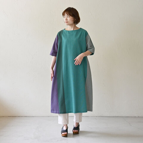 鮮やかな4つの配色をたっぷりまとうことが出来るワンピース。