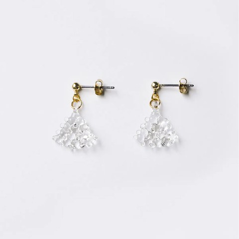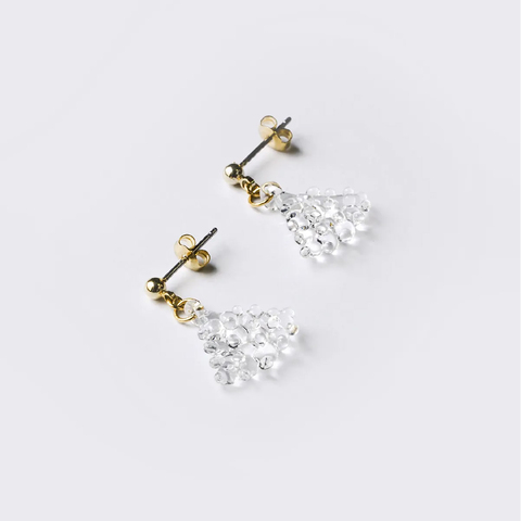 光を透かす雪のように、澄んだ質感と静かなきらめきをまとったガラスアクセサリー。