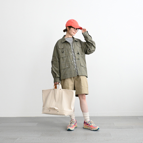 ヴィンテージのフィッシングジャケットをデザインソースに、シャツ素材にて軽量にアップデート。