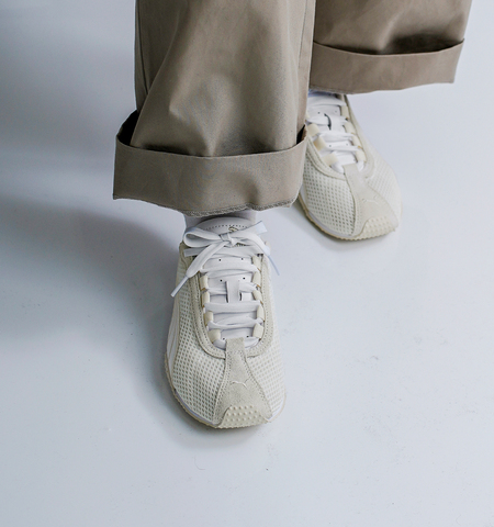 軽量で通気性に優れたメッシュアッパーと、足にしっかりフィットするレースクロージャーが快適な履き心地を実現。目立ちすぎないシルエットに、クラシックなラウンドトゥとフラットヒールを採用し、どんなスタイルにもマッチする万能な一足です。