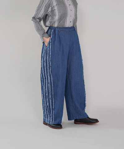 さりげなく表情を添える、サイドテープデザインのデニムパンツ