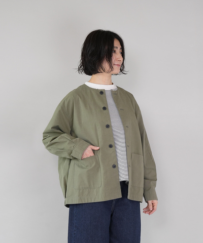 Bliss bunch|コットンリネンの ノーカラーフリンジジャケット