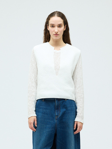mizuiro ind|メッシュドットハイネックプルオーバー