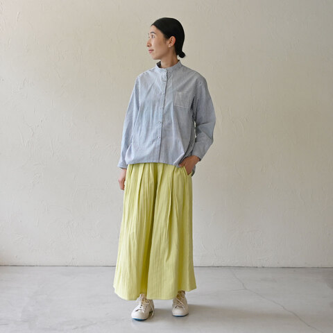 少し太めの糸を使用した平織コットン生地は、ハリがあるので体にまとわりつかず、真夏にもおすすめ。