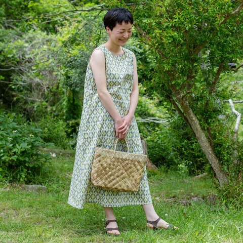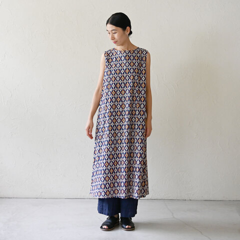 ボートネックのノースリーブワンピースが、タイルプリントになって今季再登場!