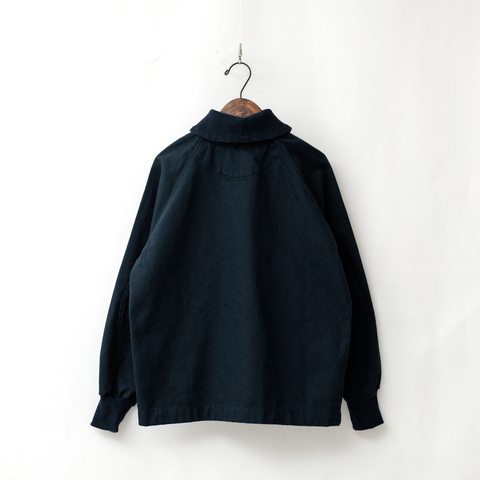 クラシックカジュアルな襟、ラグランスリーブ、機能的なポケット、ちょこんと入った刺繍、ひじあてがついているのも特徴です。
