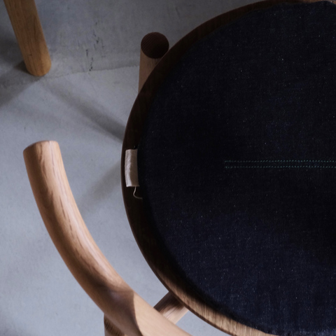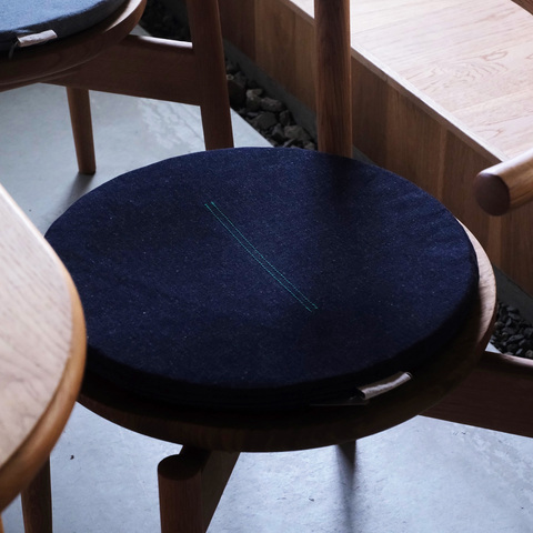 indigo(インディゴ)。瀬戸内の海を思わせるカラーは反応染(はんのうぞめ)により、座面への色移りを抑制。