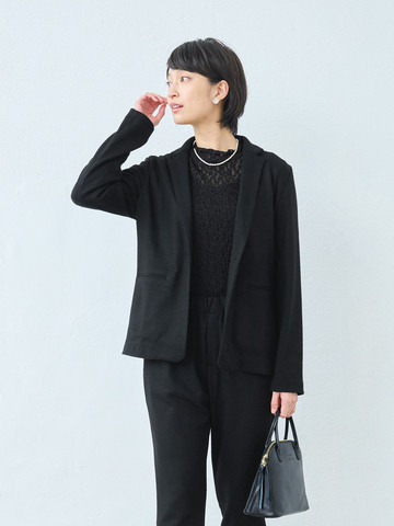 ON/OFF着回しがきく。ウール100%で暖かい。ストレッチで疲れにくい。ゆったりシルエットで体型カバー。私たちは、キチンと感を演出しながら、デイリーに使えて、着回しがきくフォーマル服をつくっています。上質な素材と定番的なデザインであれば、パールやコサージュなど少しの小物を上手に身に着けるだけで、フォーマル顔になります。ウールの産地尾州で特注した圧縮ウールは、抜群の伸縮性で、フォーマルな場もデイリーもノンストレスな着心地です。
