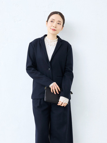 ON/OFF着回しがきく。ウール100%で暖かい。ストレッチで疲れにくい。ゆったりシルエットで体型カバー。私たちは、キチンと感を演出しながら、デイリーに使えて、着回しがきくフォーマル服をつくっています。上質な素材と定番的なデザインであれば、パールやコサージュなど少しの小物を上手に身に着けるだけで、フォーマル顔になります。ウールの産地尾州で特注した圧縮ウールは、抜群の伸縮性で、フォーマルな場もデイリーもノンストレスな着心地です。