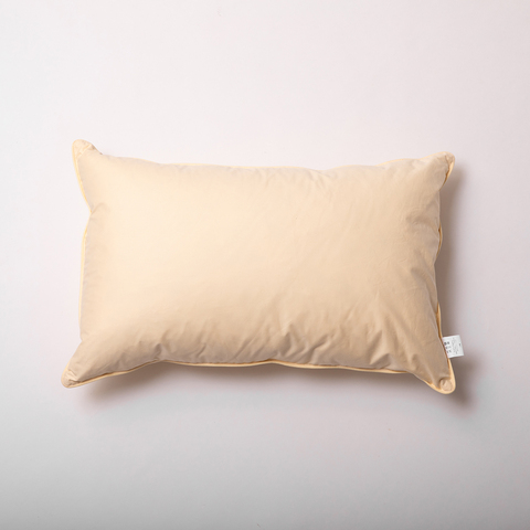 日本製の羽毛クッションは、しっかりとした弾力が。