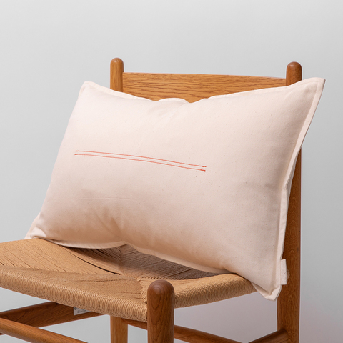 kinari(生成り)は綿の素材感を味わえ、あらゆるインテリアに馴染みやすいカラーです。オレンジのステッチ入り。