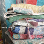 インド西部の砂漠地帯で母から娘へと引き継がれている伝統的な手仕事。使い古したサリーやデュパタを重ね、刺し子やパッチワークをすべて手縫いで仕立てた1点もののキルトです。